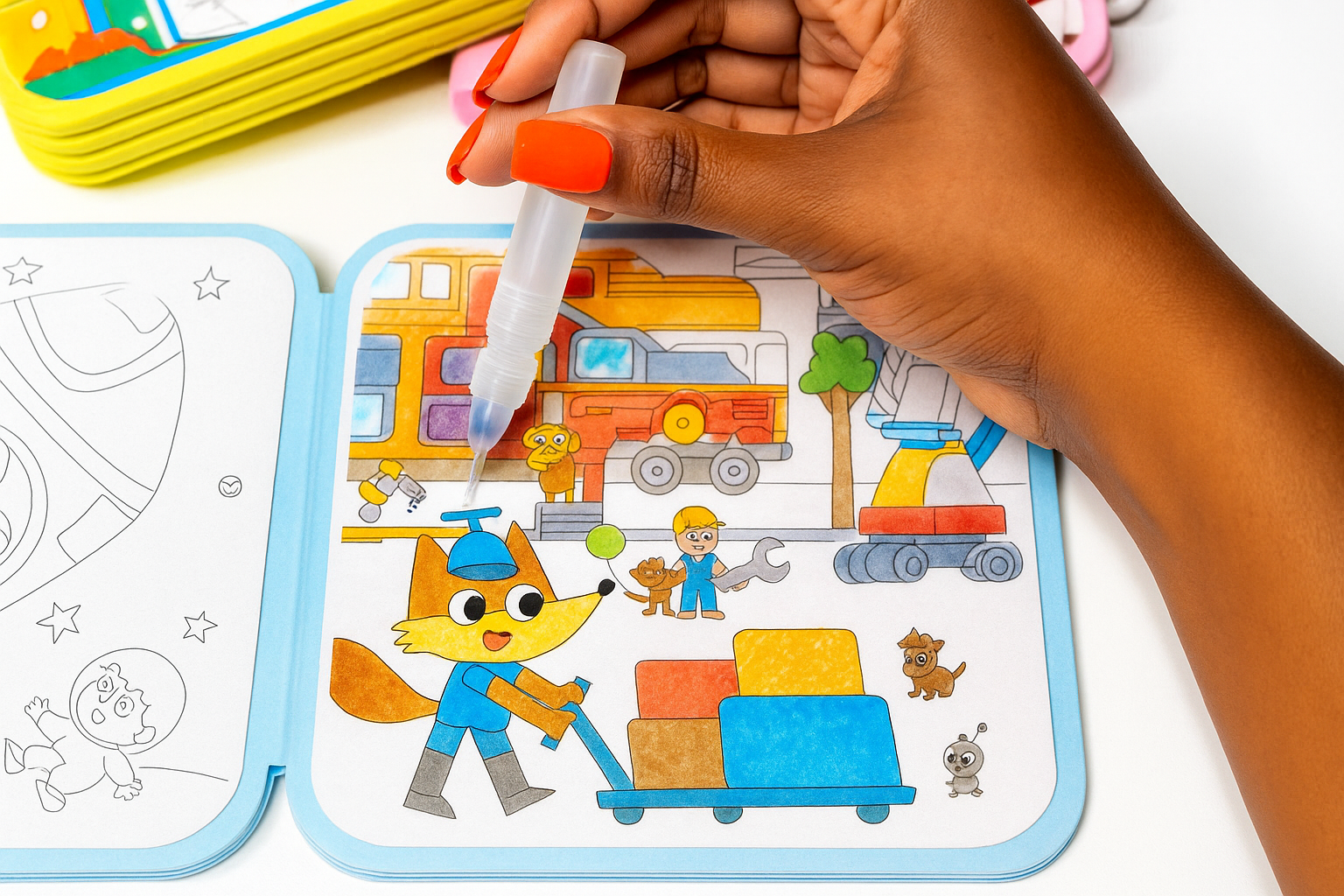 Kids paint vibrant art with just water. Reusable pages dry clear for endless fun wherever you go.